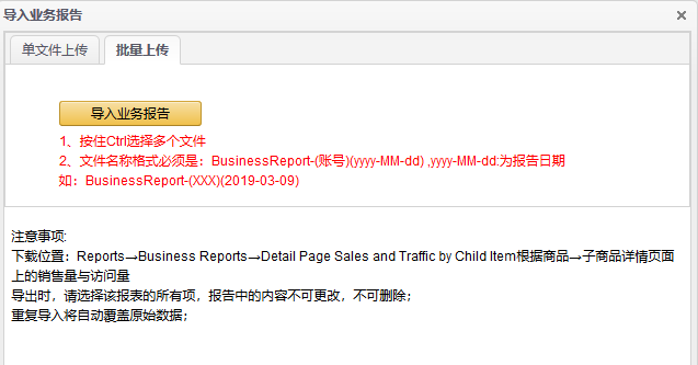 文件名稱格式必須是:BusinessReport-(賬號)(yyyy-MM-dd) ,yyyy-MM-dd:為報告日期